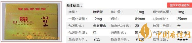 | 类型 :烤烟型 | 焦油量 :11mg | 烟气烟碱量 :1mg | 一氧化碳量 :12mg |