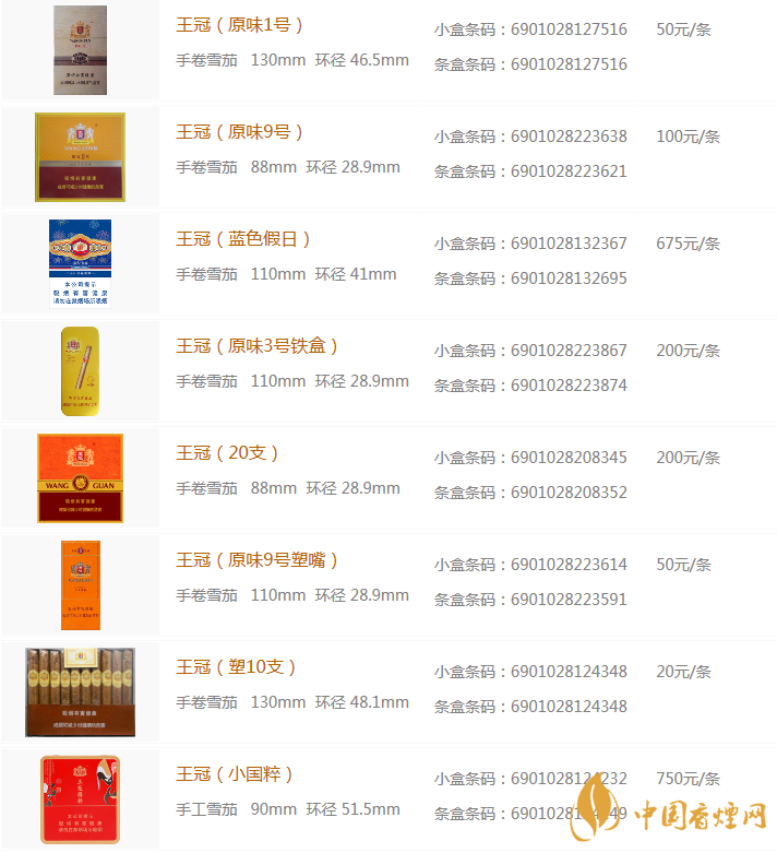 以上就是香烟网小编为大家介绍的王冠雪茄烟价格表图 王冠雪茄有哪些的相关内容,希望为大家提供帮助。想了解更多雪茄烟的价格,欢迎多多关注我们哦!