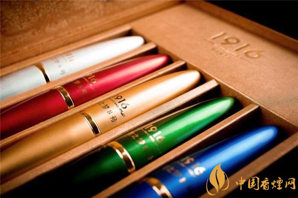 雪茄都配有造型时尚精美的铝管装置,绚丽养眼的五色铝管,令人爱不释手,罕见的梭子形茄体设计,茄体结构很好,茄体呈现为棕黄色,配有1916黄鹤楼雪图案的品牌标环,由于是款大环径的雪茄,环标也设计得很大。