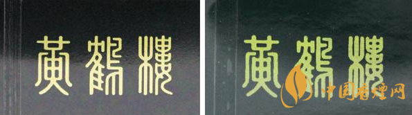 盒包侧面“黄鹤楼”文字对比:真品卷烟字体清晰,文字边缘呈规则锯齿形。假烟文字粗糙,文字边缘无锯齿,有毛刺。