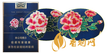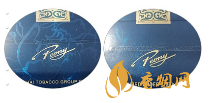 真品卷烟:蓝色牡丹花图案,侧光观察线条明亮、反光度强;线条油墨厚实,手摸有凸起感。