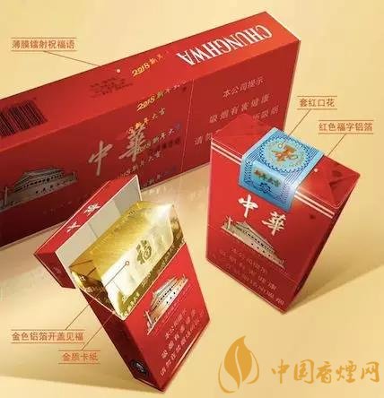 2018春节送礼送什么好烟? 2018中华香烟春节季产品推全新包装 软硬中华烟贺岁玩纪念版。中华戊戌贺岁版分中华(硬)和中华(软)两款产品。其中,“硬中华”生肖版单包烟盒采用了金质卡纸,打开盒盖之后可以在金色铝箔上看见“福”字;而“软中华”生肖版则在单包烟盒采用了红色福字铝箔,烟盒上方黏贴处还带有“套红口花”;两款产品条包烟盒薄膜上都带有镭射祝福语。
