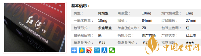 红河(V8)的上市,颠覆了传统的横版包装,人性化横版塞车概念的包装设计,高端大气,尽显尊荣。色彩设计运用黑色厚重的力量感,孕育和承载红色激情涌动的勃勃生机,非常具有特色。味道我觉得是红河系列里面最好抽的。烟气纯正清雅香气,烟气柔和,余味舒适,津甜。红河品牌在没有基础的情况下从乙级、甲级、88、99们主打的中低端向高端区间的突然跨越,实属不易!下面就由香烟网小编带大家一起来了解红河硬v8相关信息。