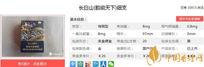 以上便是由香烟网小编为大家介绍的关于长白山韵藏天下细支口感及价格 烟草本香与沉香相结合的相关信息,想要了解更多有关内容请点击:贵烟福天下多少钱一包 贵烟福天下口感及参数介绍