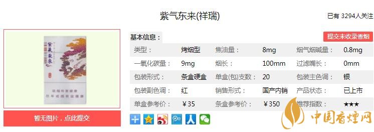 以上便是由香烟网小编为大家介绍的关于紫气东来祥瑞多少钱 紫气东来祥瑞口感及参数介绍的相关信息,想要了解更多有关内容请点击:宝岛天叶手捻多少钱一包 为大陆游客设计的旅游烟