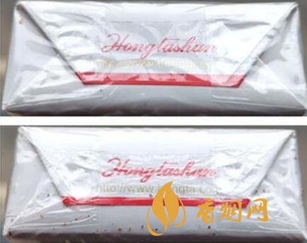 真品香烟:透明纸烫封收缩均匀、自然,有烙铁痕迹,商标纸拐角折叠空隙较大。