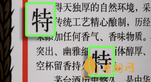 右侧白边黑字的“贵州茅台酒”同样用手触摸具有明显凹凸感;