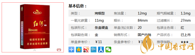 | 类型 :烤烟型 | 焦油量 :12mg | 烟气烟碱量 :1.1mg | 一氧化碳量 :11mg |
