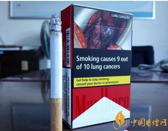 我们可以看到,从国外进口来的万宝路香烟上表示都是非常可怕的,时至今日,图片警示的有效性已被20多个国家证明,一些国家已经立法规定在烟盒上印烂肺、黑牙、骷髅等重口味警示标示。