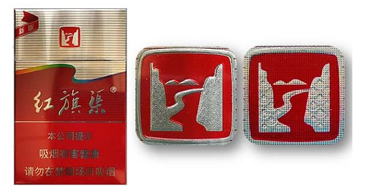 假冒卷烟:该款假冒卷烟“红旗渠”图案,基本无金属质感,立体感差,“水纹”图案不完整不清晰。